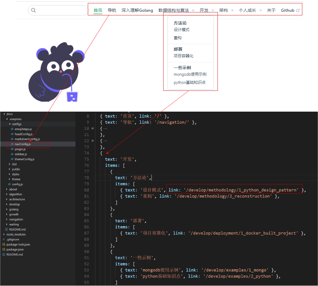 顶部的导航文字与文件的内容映射关系如下: