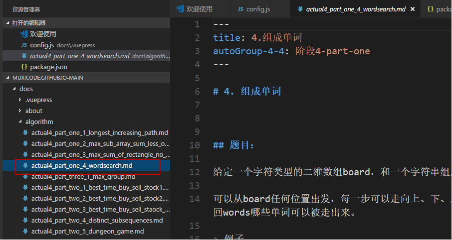配置link示例:link: "/algorithm/actual4_part_one_4_wordsearch"