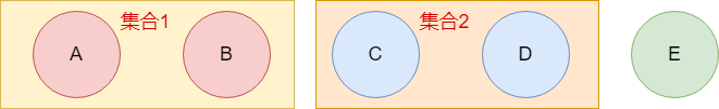 我们有五个同学,这几个同学一开始互相都不认识,各自属于不同的集合。