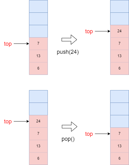 栈结构如下所示,每次添加元素只能往顶部添加,取元素也只能从顶部先取元素。