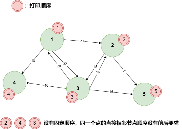 - 在图的宽度优先遍历中,同一个节点的直接相邻节点,之间的打印顺序,没有要求
