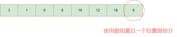 🚀 大于区域的位置 (more):它的起始点是数组最右边8的位置,因为8现在是我们的分界线,要先排除。