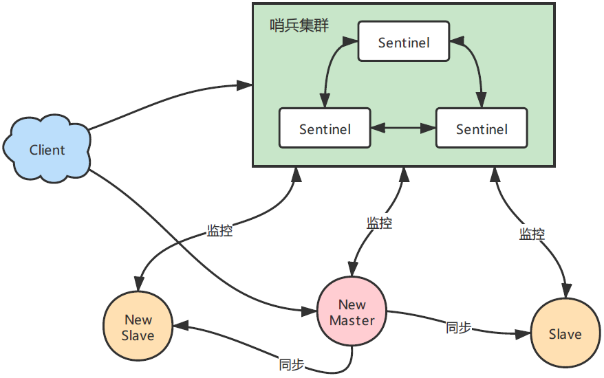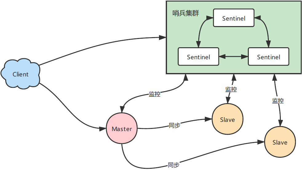 - Sentinel有可能会挂,所以Sentinel一般都是一个集群