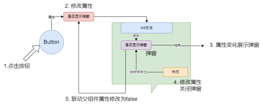- 在弹窗组件中,无法修改Button组件传递过来的属性,以便自己关闭弹窗。