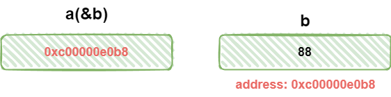 - 变量 b 存储的值是 88,存储的地址是:0xc00000e0b8