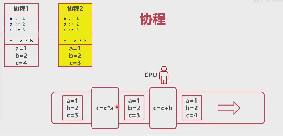 - 从线程的角度看,协程是一段程序,自带执行现场