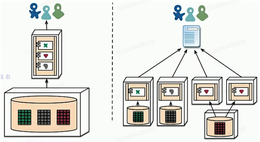 - 应用无法拓展,虽然在一个单体中划分了模块,但是由于服务复杂,导致代码难以理解