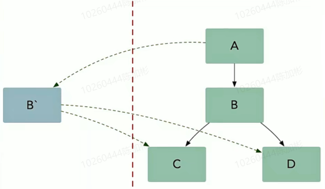 - k8s的管理平台,包括发部平台,在测试的时候,把B’的发部当成一次染色发布,比方叫 高级功能001,进行部署